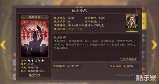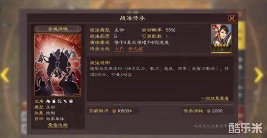 首先是作为主将的姜维,我们给其带夺魂挟魄和被蛇鬼车来降低敌方属性,方便队伍后续输出,并能提高队伍的续航能力,加点选择全武,兵书选择蛮勇非勇、胜战和文韬。