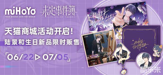 6月21日起,《未定事件簿》官方天猫商城将开启陆景和生日庆典活动,多样精美周边上新。