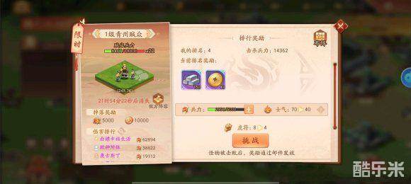 1、但个人建议不推荐一个小怪打多次,因为原因很简单,奖励不是特别丰厚,可以迁城到人多的地方,然后等六点刷新,分析附近士气损耗不大的情况下就可以多找几个精英摸一下,优先在最大范围内多摸精英,这样保证在精英死后可以分到多数奖励。这是在条件允许的情况下效率获得石材的玩法。
