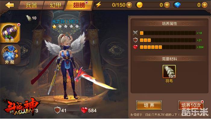 新版本中的翅膀养成玩法,是在游戏原有的翅膀系统基础上增加了养成系统,玩家可通过消耗道具“羽毛”,对翅膀进行养成。当消耗的羽毛到达一定的数量时,翅膀就会得到品阶的提升,并赋予玩家更多的属性加成。值得一提的是,玩家拥有翅膀后,无论是否穿戴,都将获取其带来的可观属性。参与每日任务中的天梯挑战,还可获得养成道具“羽毛”!