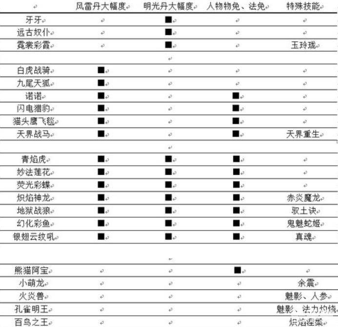 推荐骑宠:白虎等适用于风雷丹大幅度骑宠;青焰虎等具有普适性的骑宠