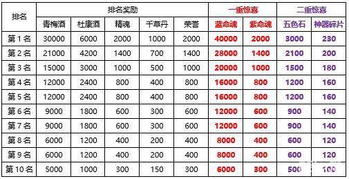 活动期间累计充值金币达到10000金币,可以额外领取一重惊喜奖励(蓝命魂,紫命魂);