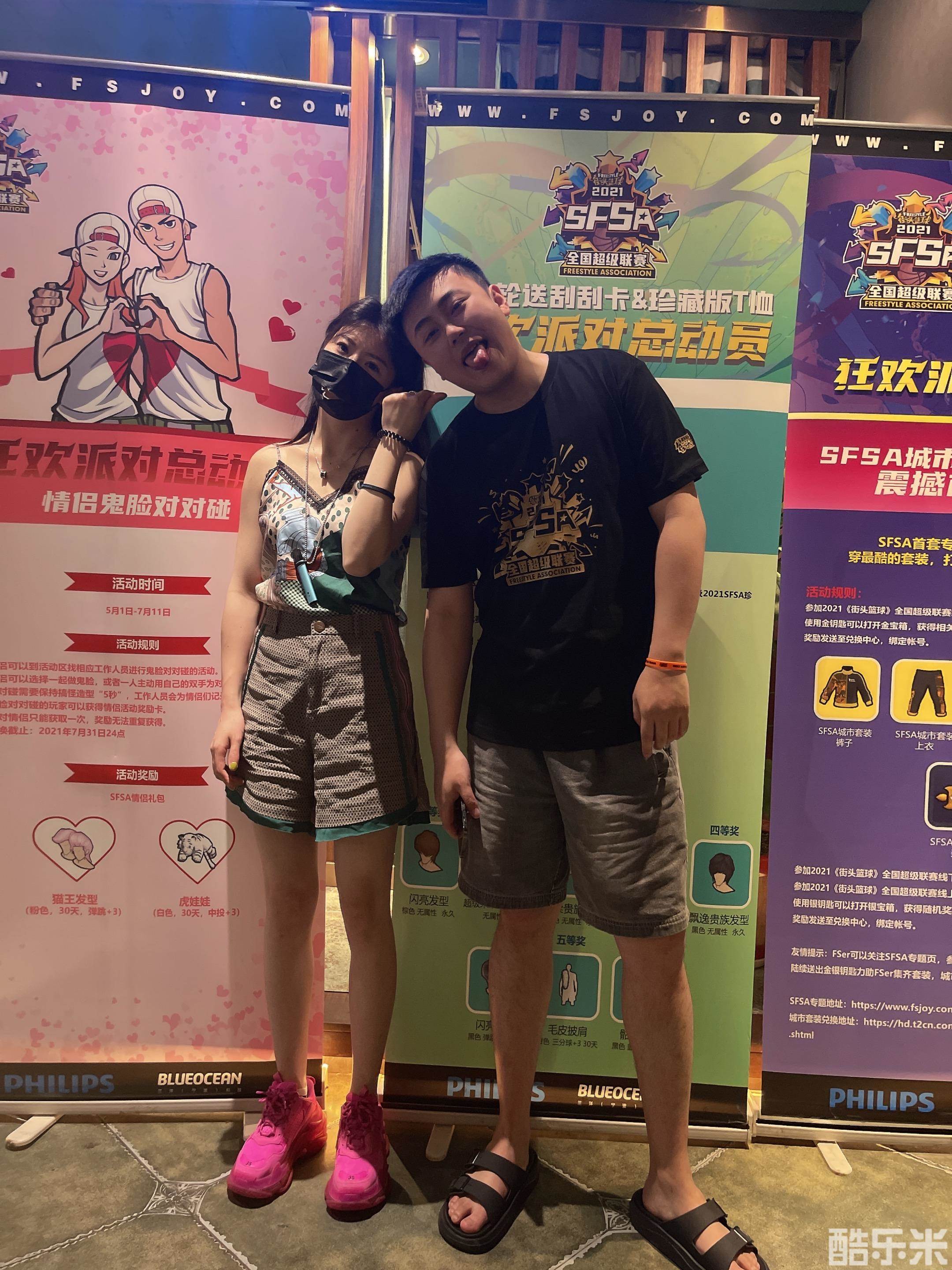 当然如果你是带妹纸来的话,可以找现场工作人员参加情侣活动,现场情侣可以选择一起做鬼脸,或者一人主动用自己的双手为对方“捏”出造型。鬼脸对对碰需要保持搞怪造型“5秒”,工作人员会为情侣记录下欢乐一瞬。完成的玩家可以获得情侣活动奖励卡,奖励每队情侣只能获取一次呦~