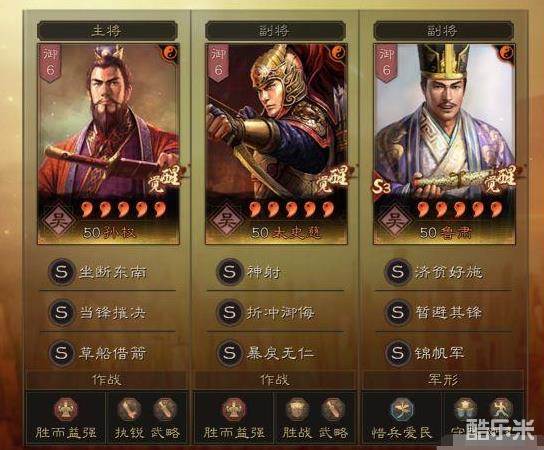 理由:孙权的输出还是依赖普攻,锦帆军也能带来一定输出,有太史慈的情况下可以在第二回合叠出100%的破阵效果,不需要胜战兵书。