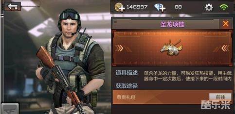 圣龙项链玩家们可以在靶场中抽奖获得,圣龙项链与僵尸狂潮是同时上线的,玩家们也多少可以了解它的作用了。僵尸狂潮是挑战模式,难度相比巨人城更大,而圣龙项链佩戴之后,玩家们使用的武器可以出发狂热技能,当使用的武器累积命中一定次数就触发技能,枪械射速大幅度提升并不消耗弹夹中的弹药!
