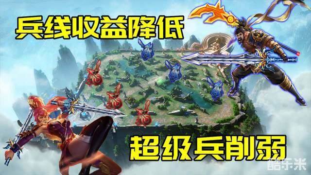 兵线进行调整由纯攻击力增长变为攻速和攻击力的成长,后期小兵的伤害也相应进行增加。以往超级兵对兵线的伤害较高,节奏较快,为了调整创造更舒适的对局节奏,所以削弱了超级兵对小兵的伤害。