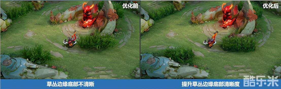 当视野精灵触发以后会跑入野区草丛,并且为友军持续探测一定范围的视野,同时视野精灵调整为双方可见,持续时间由55秒增加为60秒,冷却时间由180秒缩减为120秒。