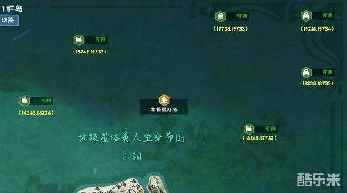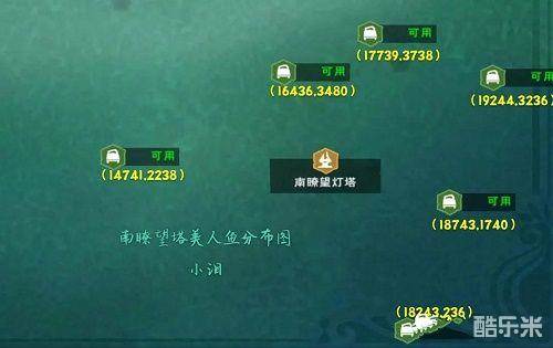 美人鱼分布点一共有5个区域,12小时左右刷新一次。