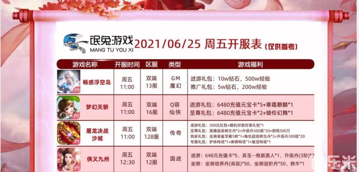 氓兔游戏官网-25号开服表-氓兔游戏周末活动集锦0点开启