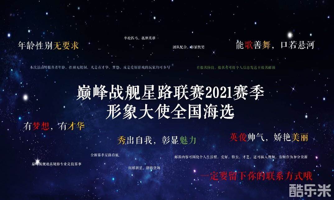 想成为万众瞩目的新星焦点吗?快来参与“巅峰战舰 Star Road 2021赛季形象大使全国招募活动”,不管你是能歌善舞,还是口若悬河;亦或是英俊帅气,还是娇艳美丽;只要你敢秀出自我,彰显魅力,就能在活动中大放异彩!巅峰战舰Star Road 2021赛季,因为有你,才会更加炫丽夺目!