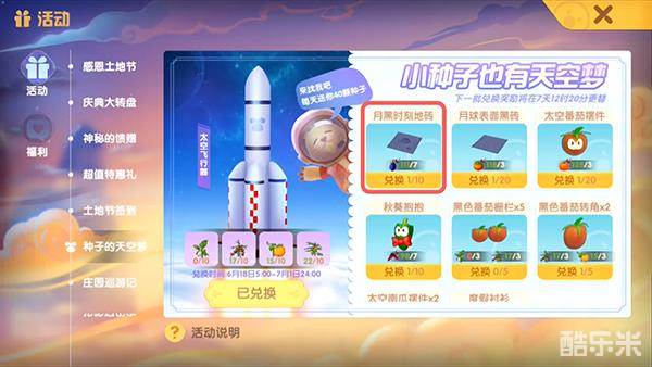 在游戏中参与种子的天空梦活动,消耗太空作物可兑换获得,在6月25日5点到7月1日24点可兑换,活动结束后将无法再获得。