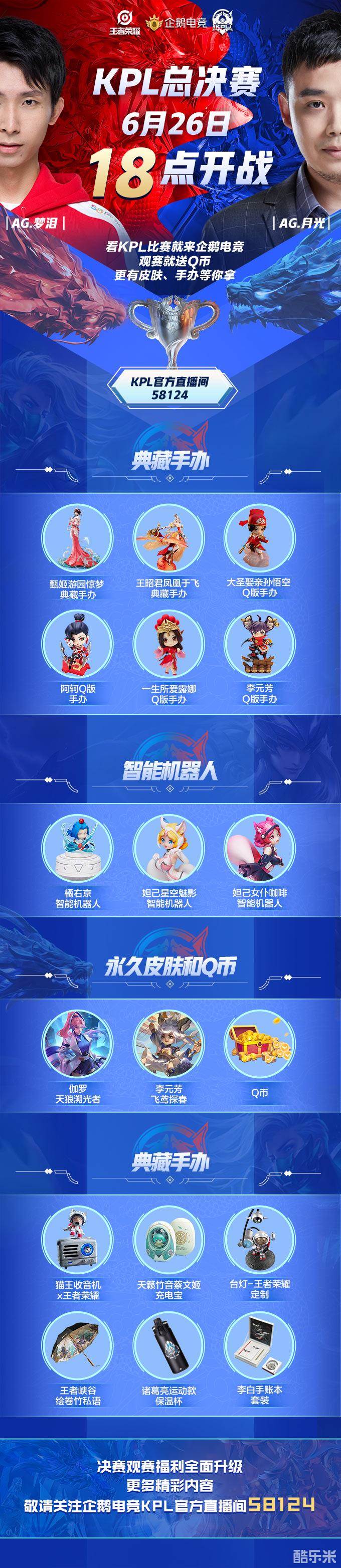 来企鹅电竞观看总决赛即可领取Q币,更有机会抽取橘右京智能机器人、甄姬游园惊梦手办、王昭君凤凰于飞手办、伽罗天狼溯光者KPL限定皮肤、李元芳飞鸢探春永久皮肤等万元好礼!决赛期间还有梦泪、月光、瓶子等明星主播和您一同观赛,为您带来幽默风趣的比赛解说!快来企鹅电竞一起观看KPL比赛吧~