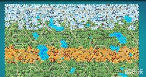 如下图所示,地图颜色从上至下依次为白色、绿色、黄色、绿色和白色。所有地图都是这种分布。出生点选取白色草地或者绿色草地,最好的出生点就是四个角落里。黄色草地开局尽量不选取,不然当你发展到与电脑接壤时,会面临好几家电脑同时打你的局面。
