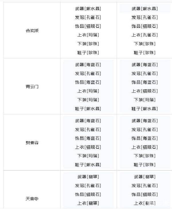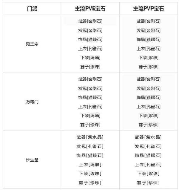 对比以上8大门派对于宝石的需求,细心的你一定发现了:镶嵌率最高的宝石是珍珠和孔雀石,也就意味着随着等级提升,尤其是达到了宝石升级的关键等级,这几个宝石的涨幅一定会比其他宝石更高,所以前期在自身购买力允许的情况下,可以先花费银子囤积一些,稳赚不赔!