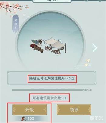 酒楼解锁需求:1000铜币升级养成需求的货币:情义值