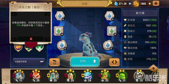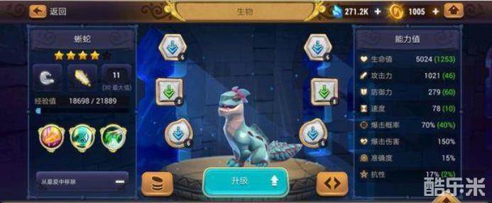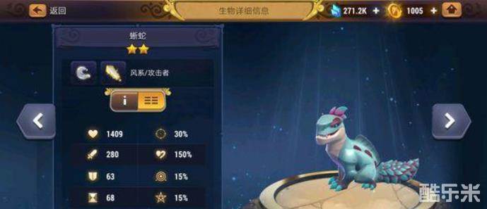 我们来看看风系蜥蛇的技能,一技能是普攻,二技能回避攻击,根据自身速度提升攻击并且有50%概率闪避攻击,持续两回合,cd三回合,好像也没什么,再看第三个技能,被动技能冰冻之触,造成暴击时窃取70%计量条,并使其中毒两回合,这个技能就很厉害了,只要能造成暴击,就能够窃取70%行动条,注意,这里是窃取,也就是说不光暴击对象的计量条会减少,自身的计量条也会相应的增加!也就是只要造成暴击就能够无限你的回合!(这里不考虑生物的抵抗效果,实战中生物有几率抵抗窃取行动条)