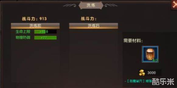 进行洗炼的装备品质越高,消耗的材料也就越多;