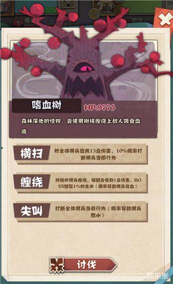 介绍:“森林深处的怪物,会使用树枝缠绕上敌人吸食血液”