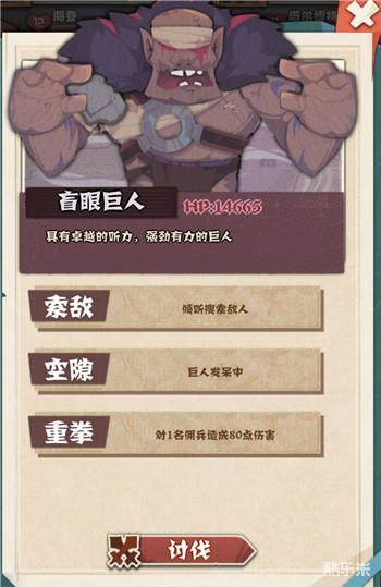 评语:盲眼巨人具有超高攻击,但可以利用其行动缓慢的特点,带牧师,不断复活队友,在盲眼巨人发呆的时候,持续消耗即可,没有牧师的情况下,不推荐打