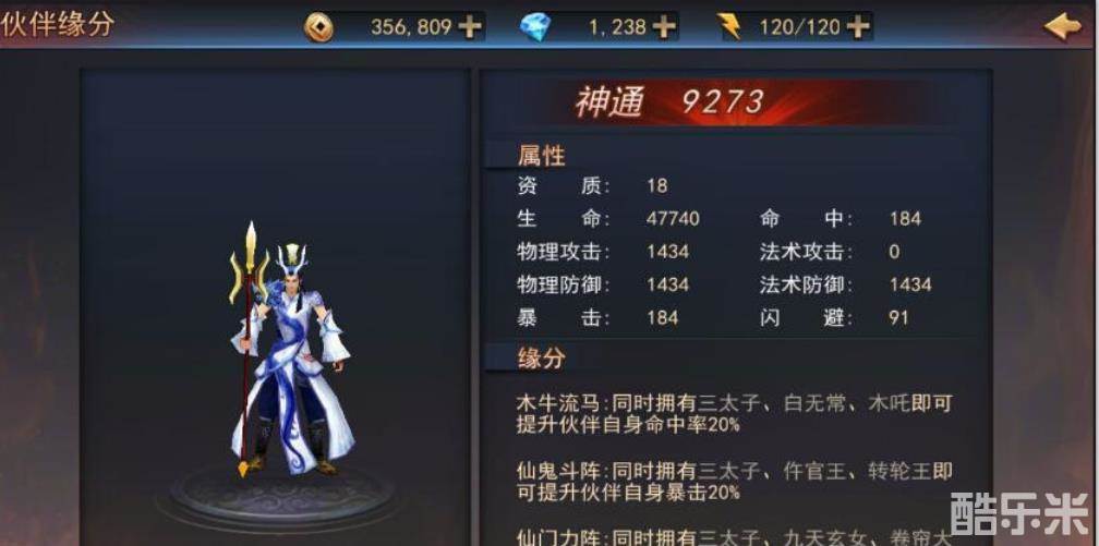 仙鬼斗阵:同时拥有三太子、仵官王、转轮王即可提升伙伴自身暴击20%。