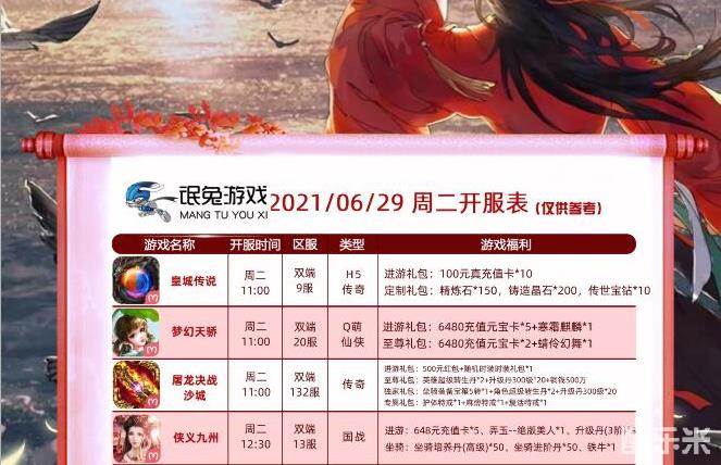 氓兔游戏官网-29号开服表《梦幻天骄》在线送充值648 10