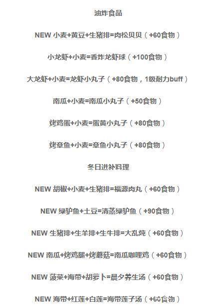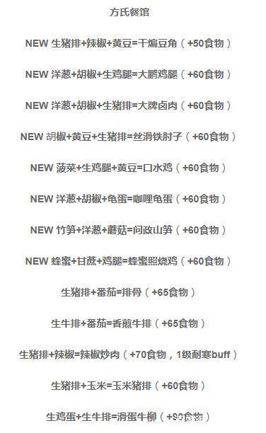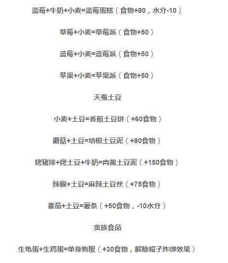 可能看完之后大家就会有一个问题,那就是配方太多再好的记性也是没用的,到底该怎么办?其实总的来说,我们只需要这几个配方记住就可以了,其他的材料后面需要拿来做成饲料,所以不建议做成食物。