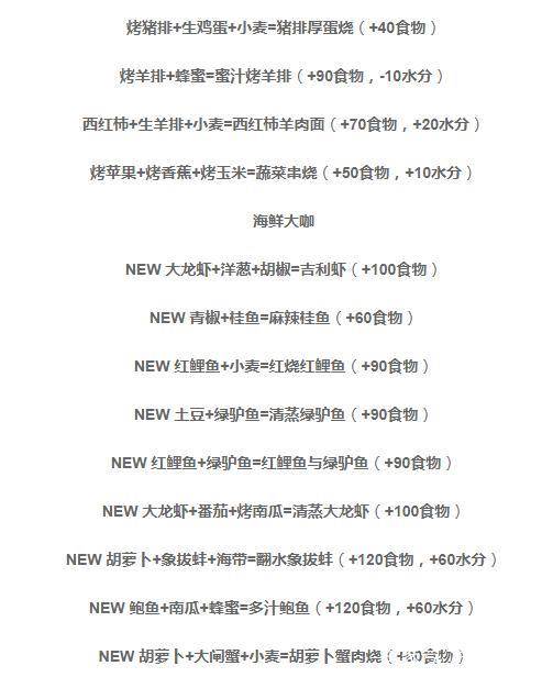 如果是新版本的话所加的饥饿值需要少10点,但是整体配方还是一样的。