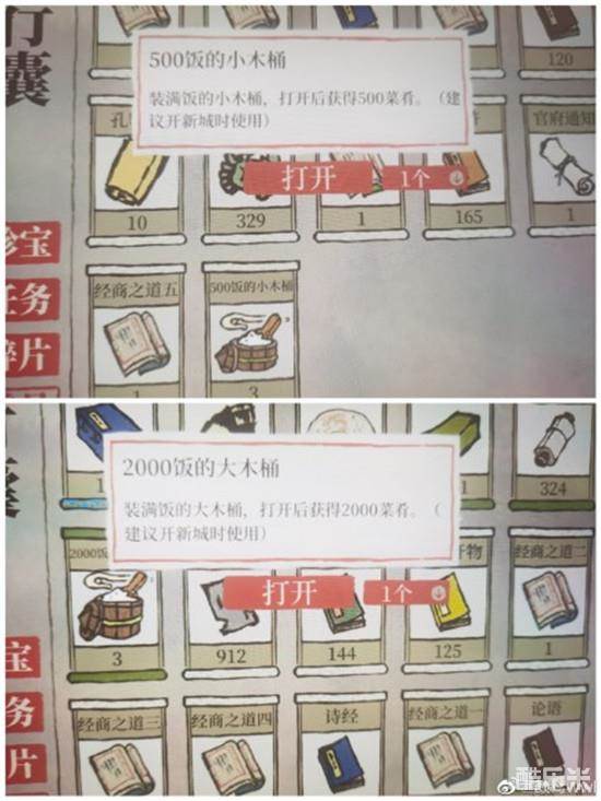 1、玩家可以使用小木桶和500饭来转换成小饭桶。