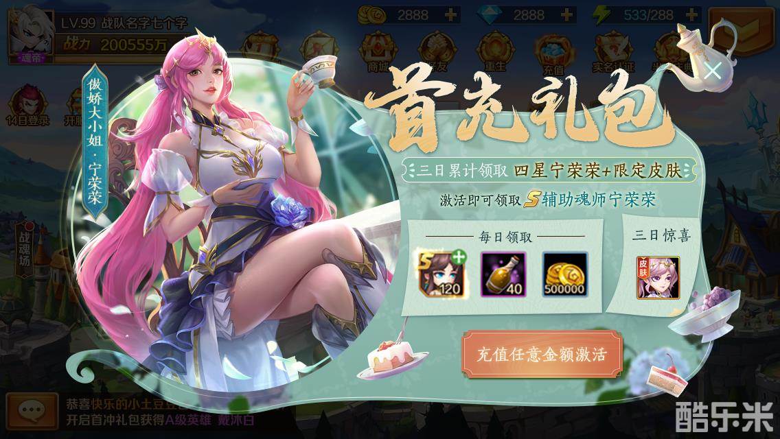 登录第3天:钻石300+武魂玉*5000+金魂币20万。