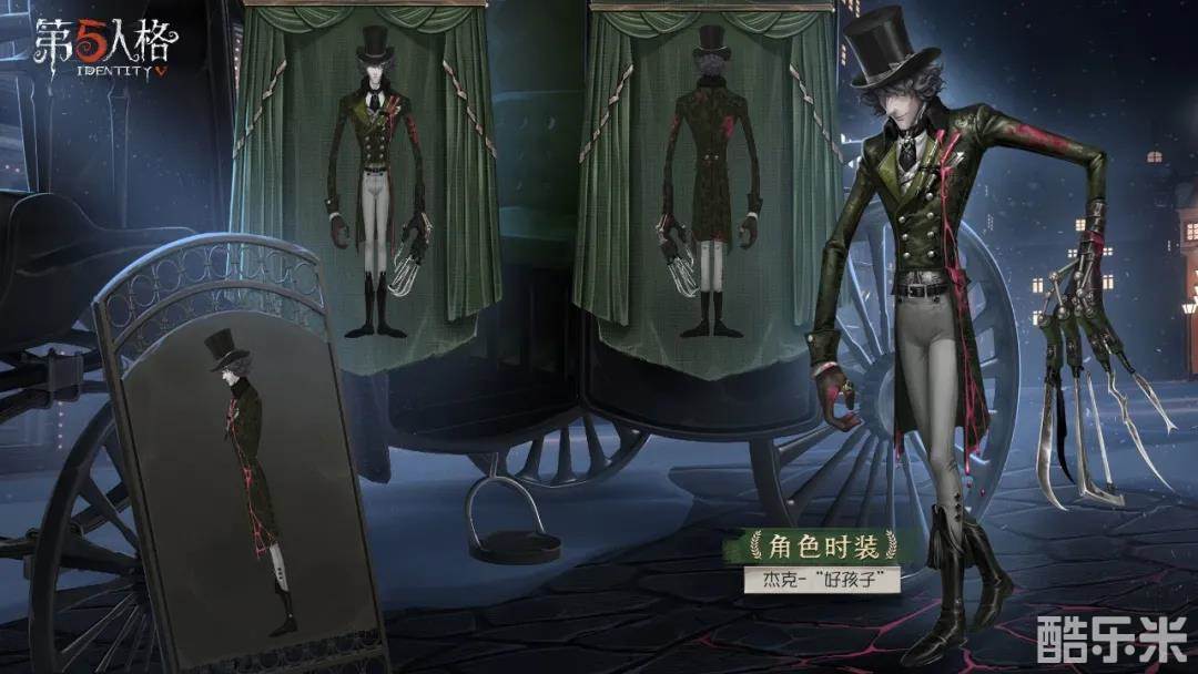 “杰克”-“好孩子”延续了帅气挺拔的风格,卷发、绿衣、领结、高礼帽,营造出了温文尔雅又谦逊温顺的气质,但当你把视线移到他左手的指刃时,不寒而栗的感觉瞬间便会将你惊醒,从左胸上的画笔处缓缓留下的红色颜料正不断向全身蔓延。