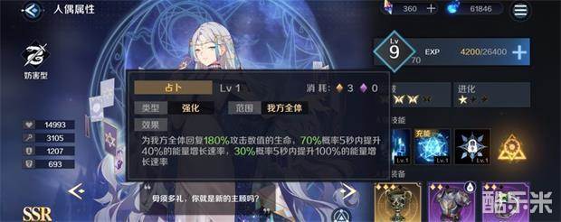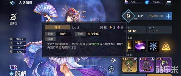 脱解主要是增加攻击力15%,易伤(增加敌方受到伤害),增伤被动。值得注意的是二技能充能,也就是不用你手动释放,也不消耗你的能量。