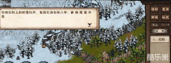 祭台遗址寻找线索,分别在(17,15)和(17,14)位置可以发现机关