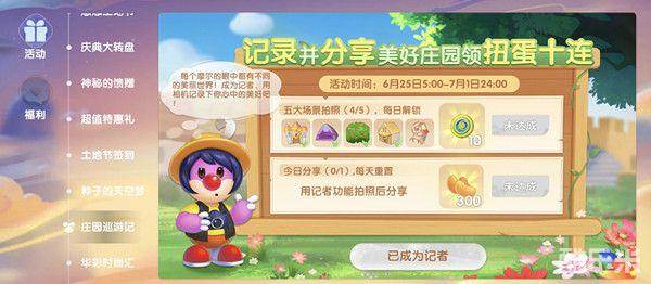 摩尔庄园近期推出了记者职业,而同时还开放了一项名为庄园巡游记的活动玩法,玩家们要去扮演记者在各个场景中拍照,完成任务后就能领取丰富的奖励。