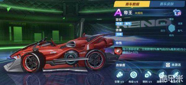 帝王特性:漂移后可以获得5%集气并且有25%概率可以增加小喷的动力。