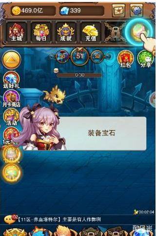 当你在乐趣《不服小天王》的世界中初战告捷,通过第50关卡,即开启宝石系统,之后每个关卡BOSS都会有机会掉落1-3级的各色宝石,还可以通过每日活动“幸运次次抽”获得宝石,当然,如果你是土豪,那么完全可以无视上面的方法,直接奔向游戏商城,买买买就行。