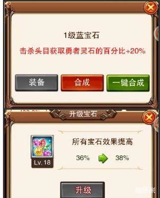 打败关卡BOSS获得的宝石一般都比较低阶,咱需要通过宝石合成系统升阶宝石,使得宝石的加成属性变得更加牛逼。不单单是宝石需要升阶,装备宝石的槽也需要升阶,宝石槽的升阶需要靠日常任务获得的蓝精石。
