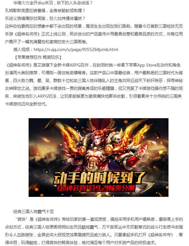 9月21日新闻三国有嘻哈,名将燥起来!《超神名将传》今日畅爽公测
