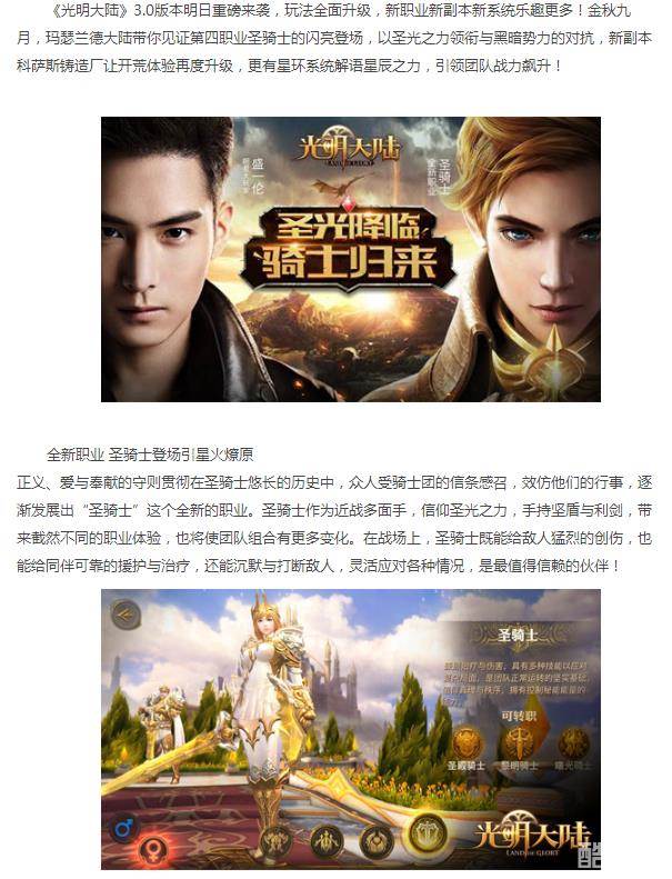 《光明大陆》新版明日上线 新职业新副本新系统前瞻