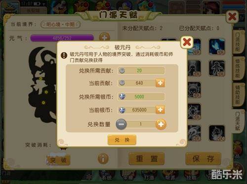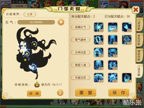 在各位仙友等级达到65级即可开启门派的天赋系统了,修仙大道也正式开启。通过修炼元气来提升修为境界,而每当元气到达一定的数量时,便可通过消耗破元丹进行境界提升。