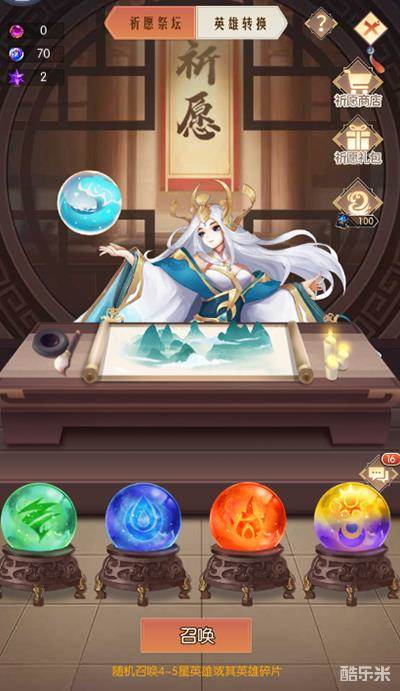祈愿系统里分为祈愿祭坛跟英雄转换两个系统: