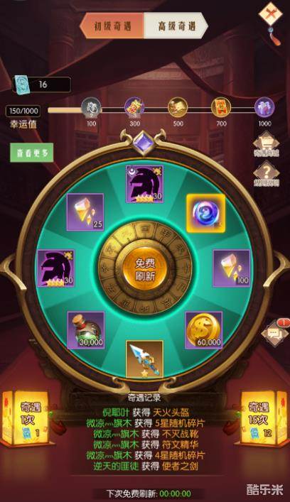 在奇遇里,我们可以通过消耗奇遇劵抽取转盘里的宝物,而转盘里的宝物会在每天的0点自动更新;我们也可以自己手动刷新,刷新到的宝物都是随机的,如果运气好刷到特别好的宝物,请务必多多投入进去抽取噢!