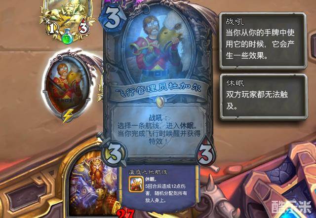 3费中立橙卡,战吼选择一条航线,之后进入休眠。三条航线分别如下: