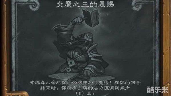 炎魔之王的恩赐,规则是在你的回合结束时,你的所有手牌法力值消耗减少(1)点,相当于每回合一个索瑞森大帝效果。