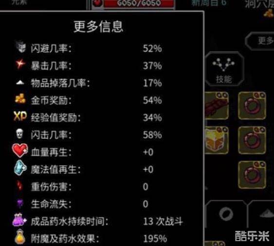 我们要做的就是出手不中后逃跑再出手一直循环(闪击只有第一次攻击触发)。你有一半的概率秒杀小怪,不中后你会被小怪打一下,你还有一半的概率闪避掉。如果运气太背,直接返回菜单,这层重新打。