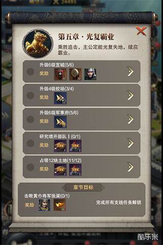 除了升级建筑、招募武将、训练士兵之外,在宫城升到6级后,主公还可以通过在学问府研究科技来大大提升自己的实力。在《霸王之业》中,科技分为兵法、资源、城池、辅助四类研究方向。兵法能提升出征部队的数量以及出征部队的武将上阵数,提高你的军事硬实力。而资源的作用为提高采集矿洞的速度。建议初期优先研究升级兵法的【增开部队】和资源的【矿车】。这样,攻占土地和资源采集两方面同时进行,最大限度提高时间效率。