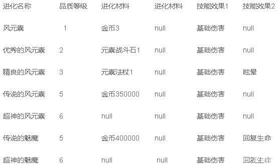 进化路线二:风元素-优秀的风元素-精良的风元素-传说的魅魔-超神的魅魔