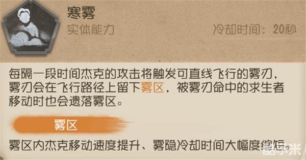 ②雾刃不会因普通攻击被打断而消失,即拥有雾刃的”杰克”在进行普通攻击时被打断,雾刃仍旧会触发且朝着”杰克”面向方向飞出,这一技巧可以在板窗博弈中使用,在面对前锋、咒术师、勘探员等拥有控制技能的求生者时也会有奇效。