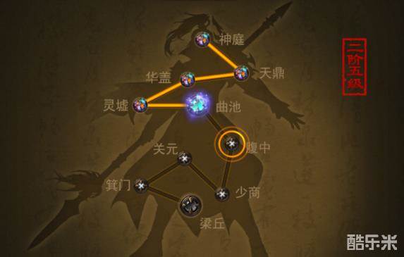 这个就是筋脉玩法的主界面,在这里可以看到经脉的各个名称,神庭呀天鼎呀华盖呀之类的。根据点亮的程度来确定我们经脉进阶到了什么程度。