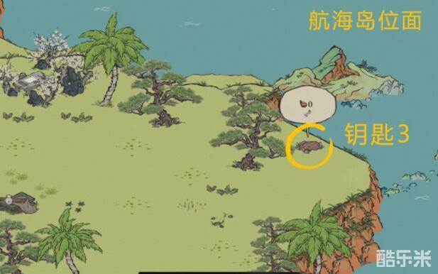 钥匙4:同样在海岛上,不过他的位置在老农夫边上的高地上,在椰子树旁。