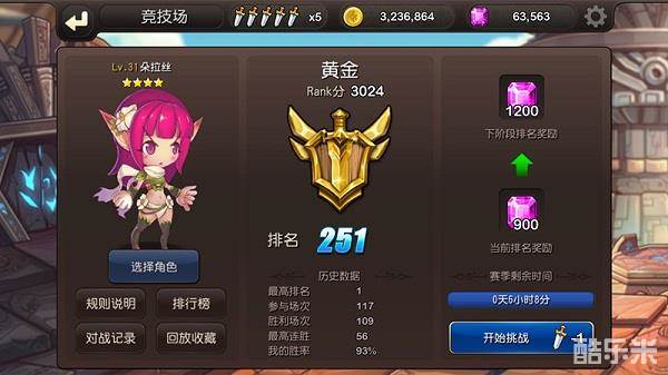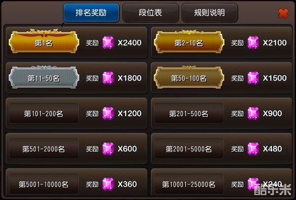 2、竞技场挑战胜利和失败都会获得不同数量的Rank分,分数影响你在服务器里的排名。